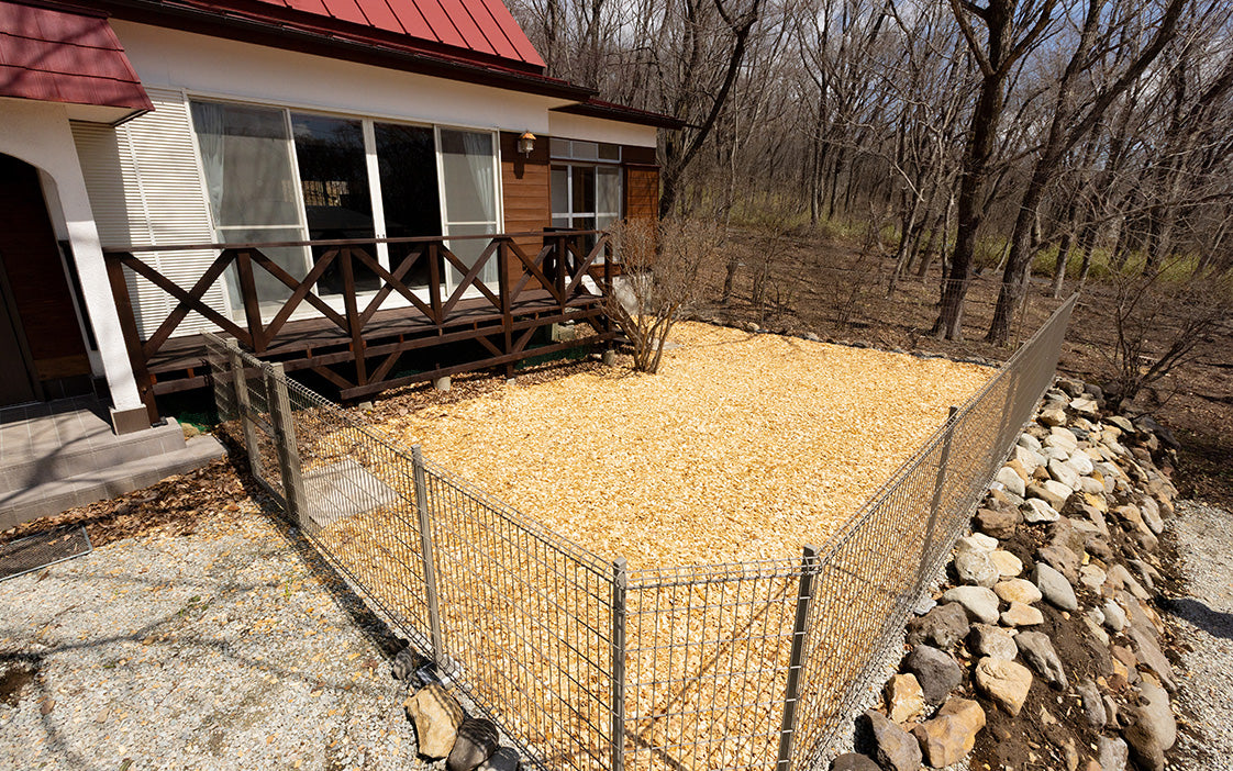 広々とした庭には専用ドッグランもあり、子どもたちも愛犬ものびのび過ごせます。