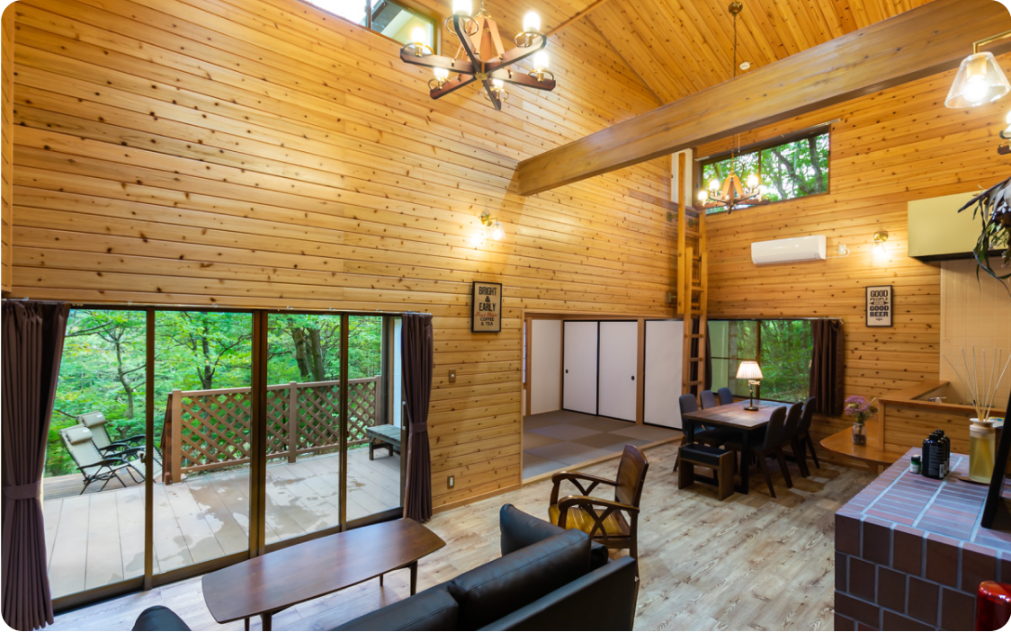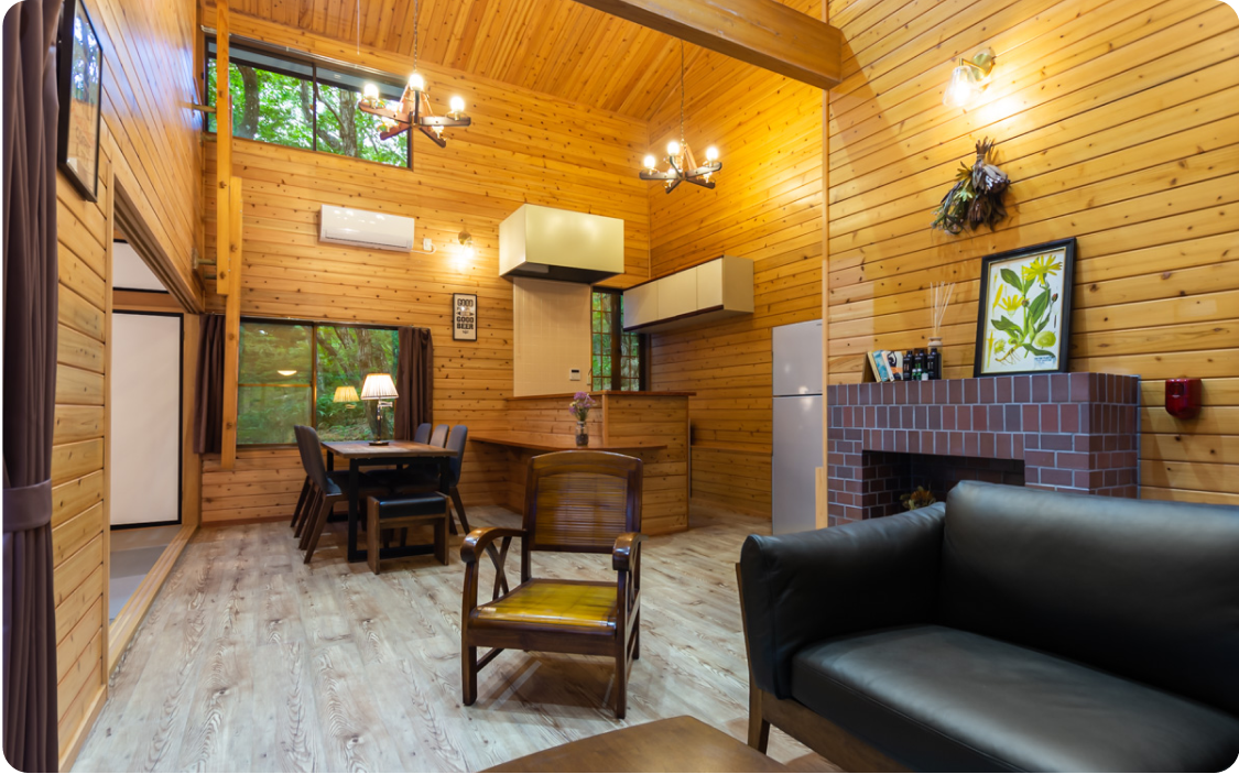 rinne 2nd livingは東京から新幹線で1時間ほどの、那須高原にある別荘地の中に佇んでいます。rinneとは、家の輪廻。築20年の歴史を持ちながらも、リノベーションをしてモダンな快適さと古き良き風情を融合させました。また、rinneはフィンランド語の「坂」という意味でもあります。那須高原の高台にあるこの家に向かうまでの坂は、日常から解放されたひとときへの入り口となっています。