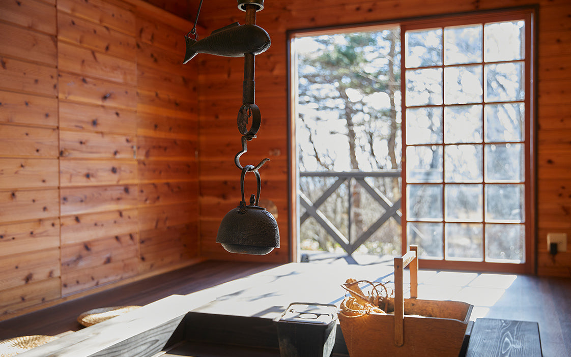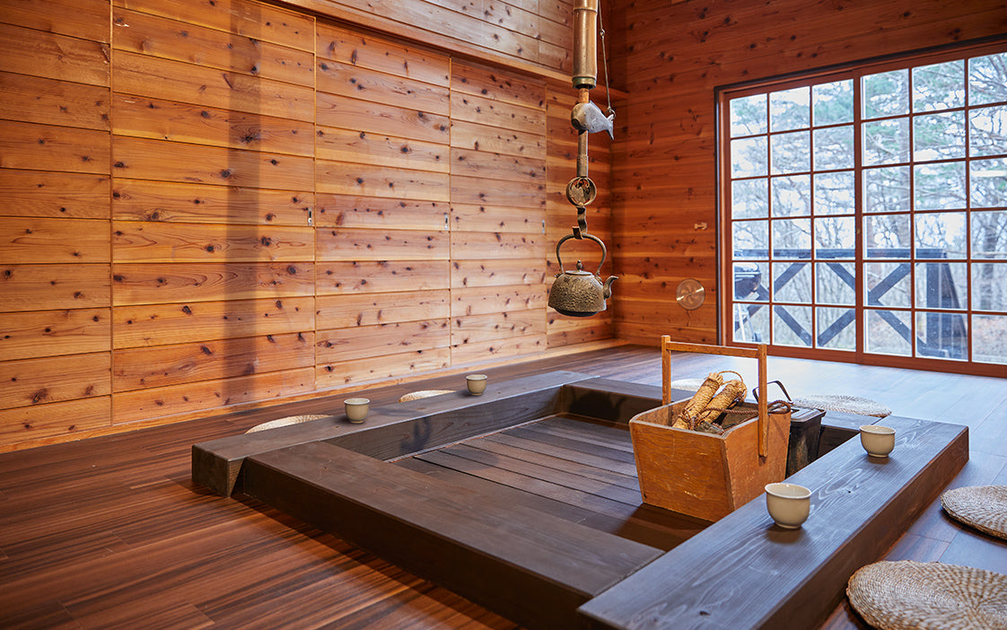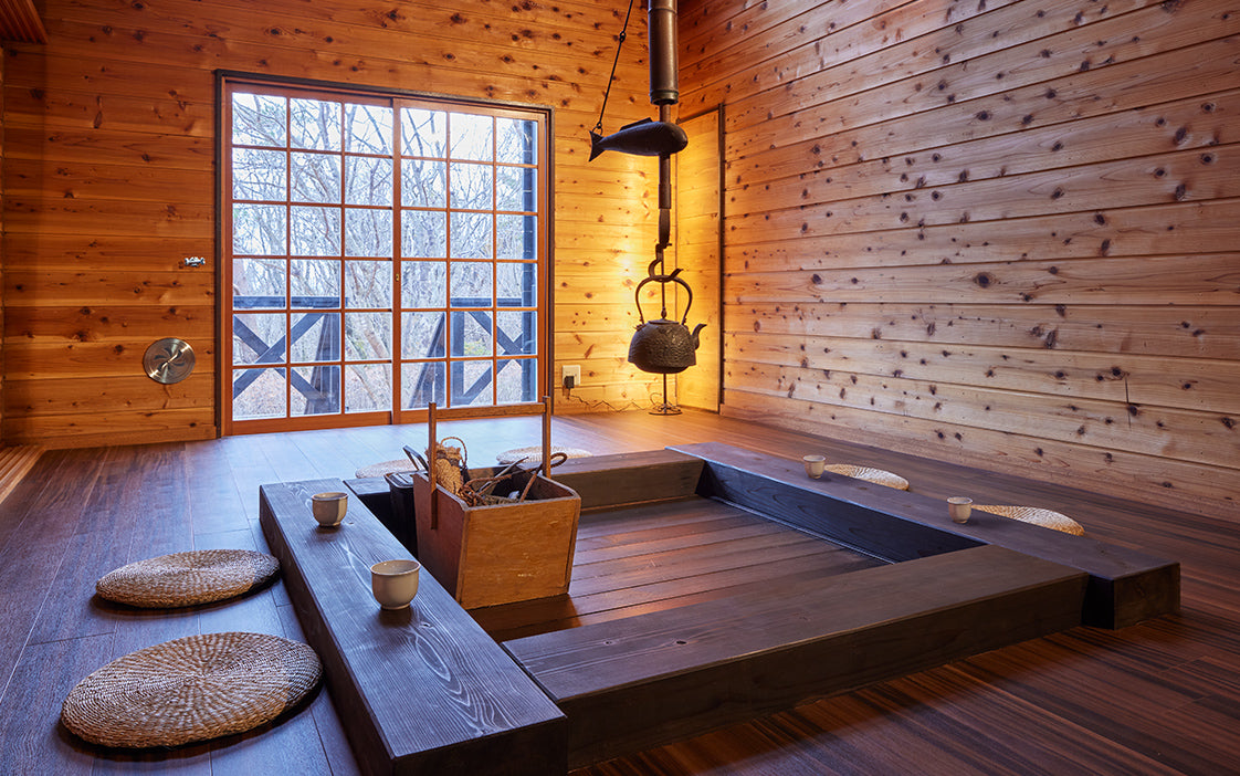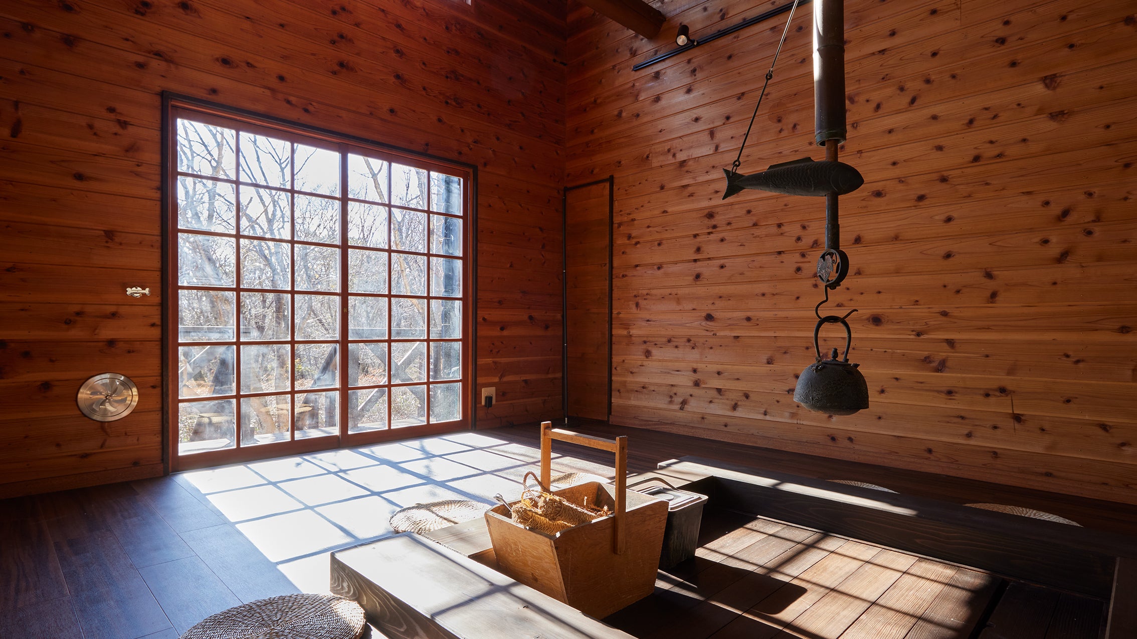 囲炉裏を囲んで家族や仲間と団欒し、景色を眺めながら特別な時間をお過ごしください。