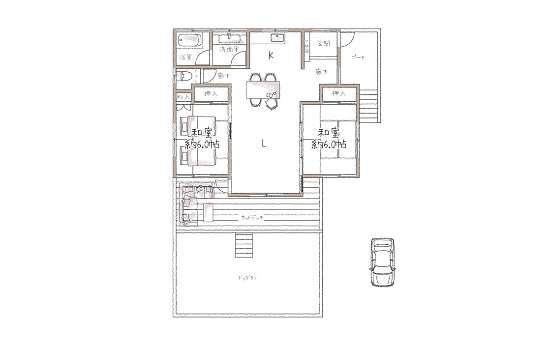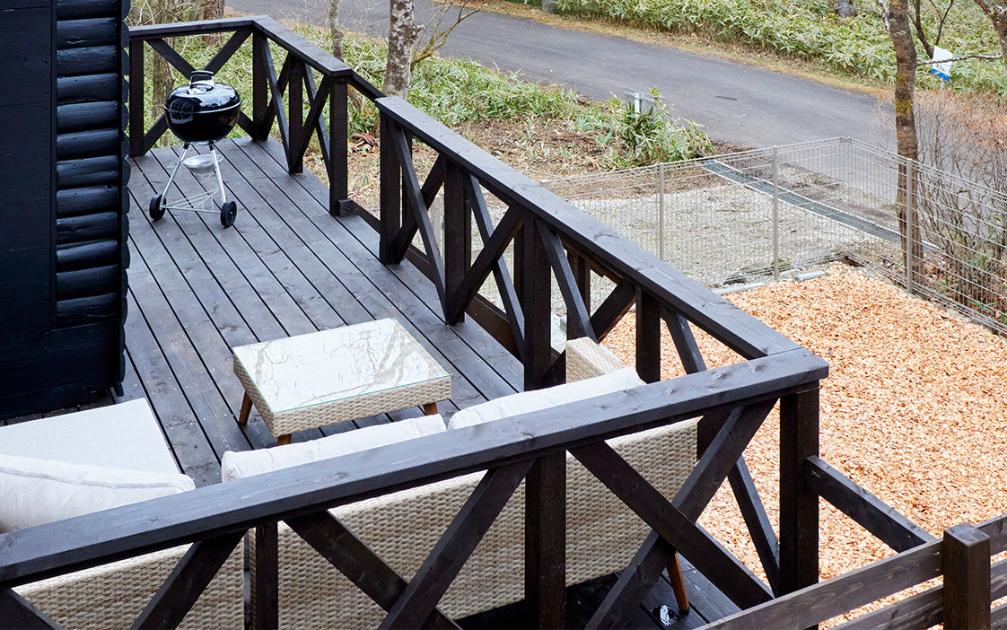 広々としたウッドデッキでくつろぎながら、プライベートドッグランで愛犬が思いきり遊べる空間をご用意しています。