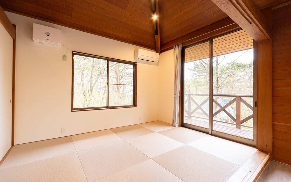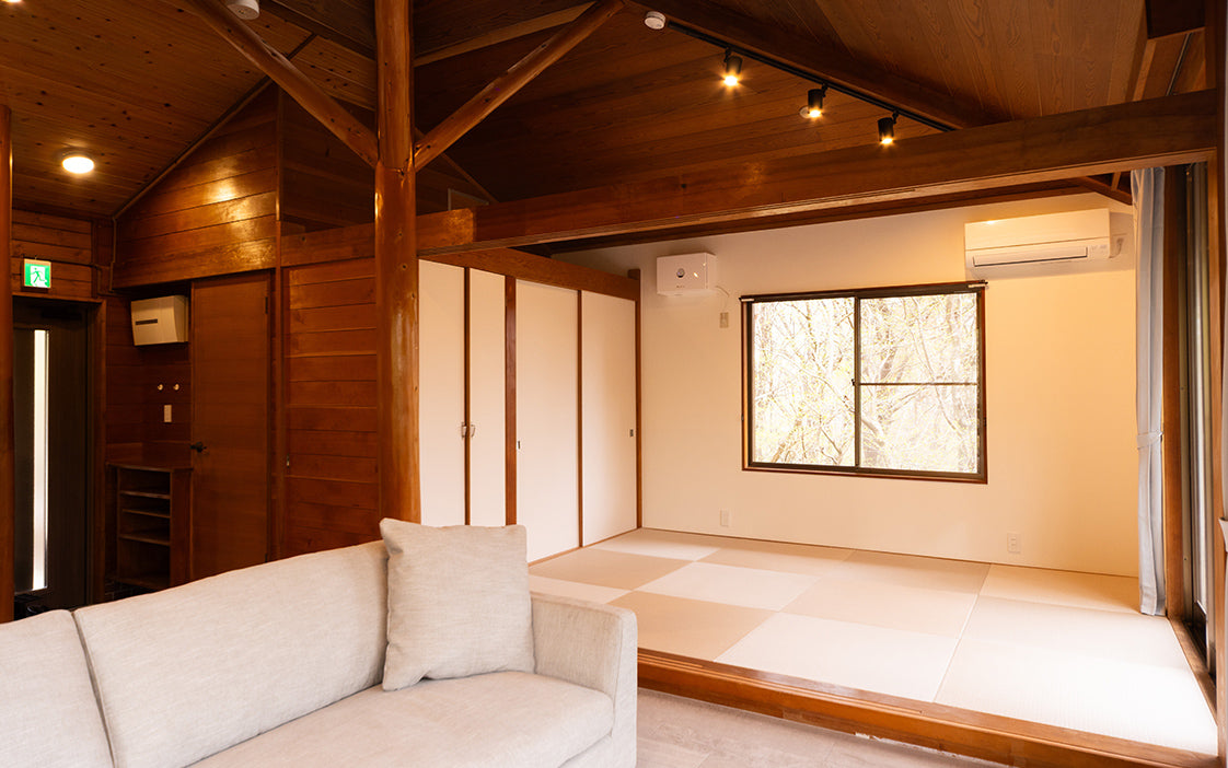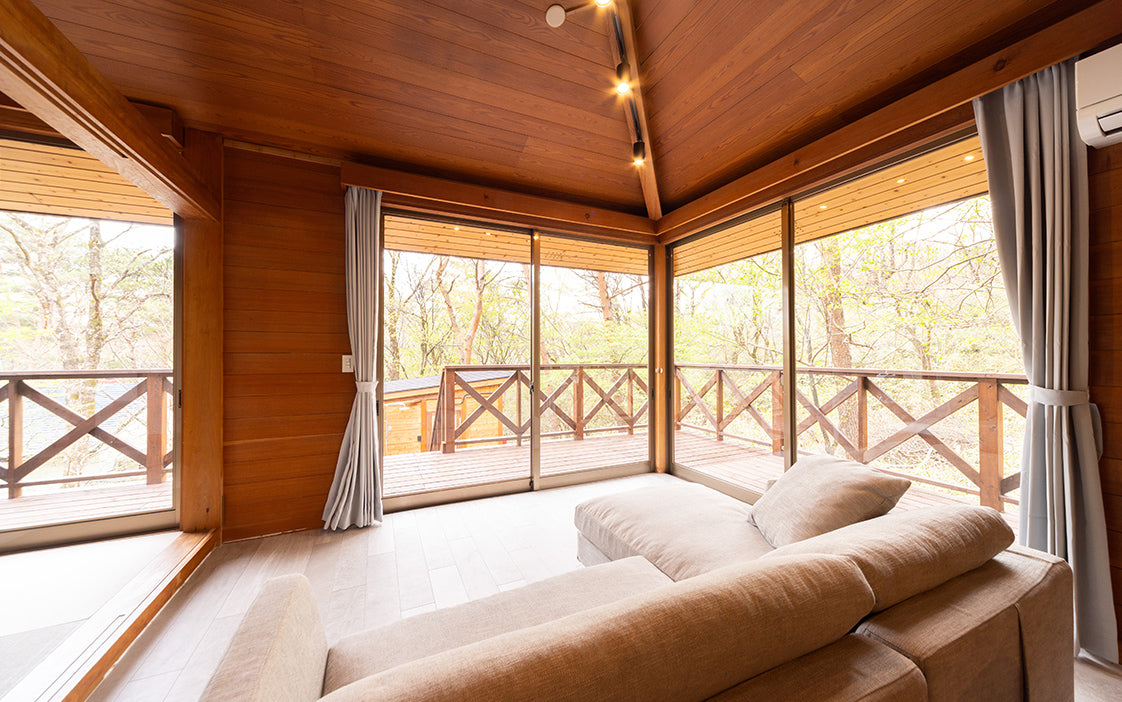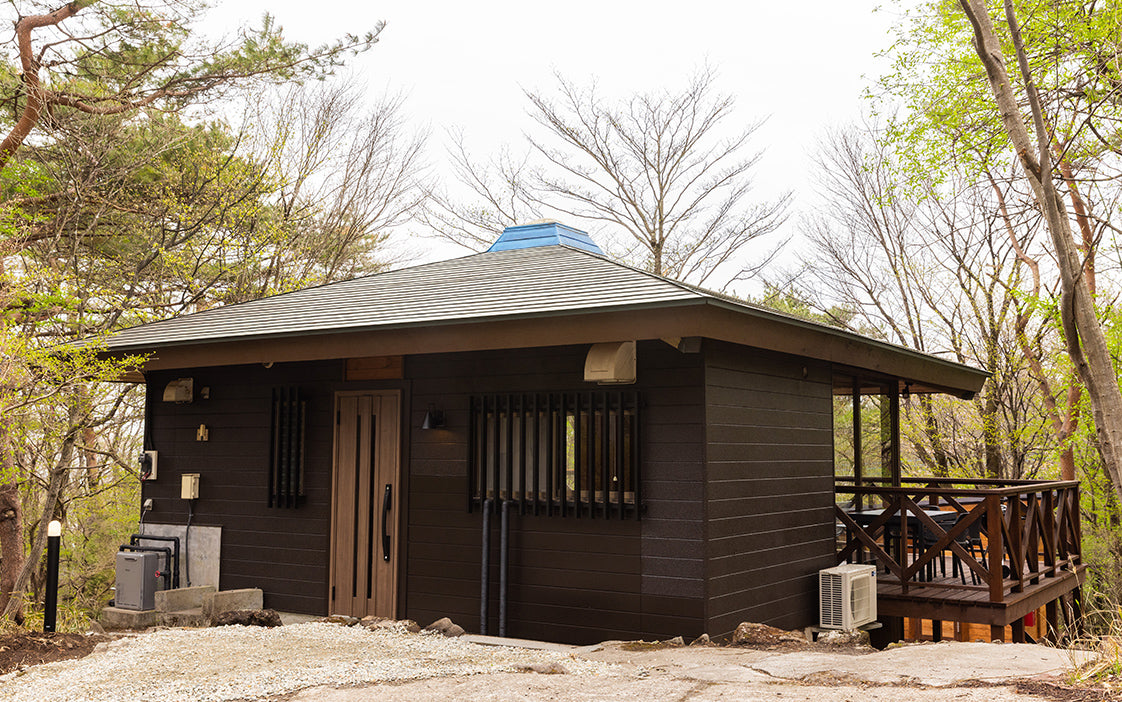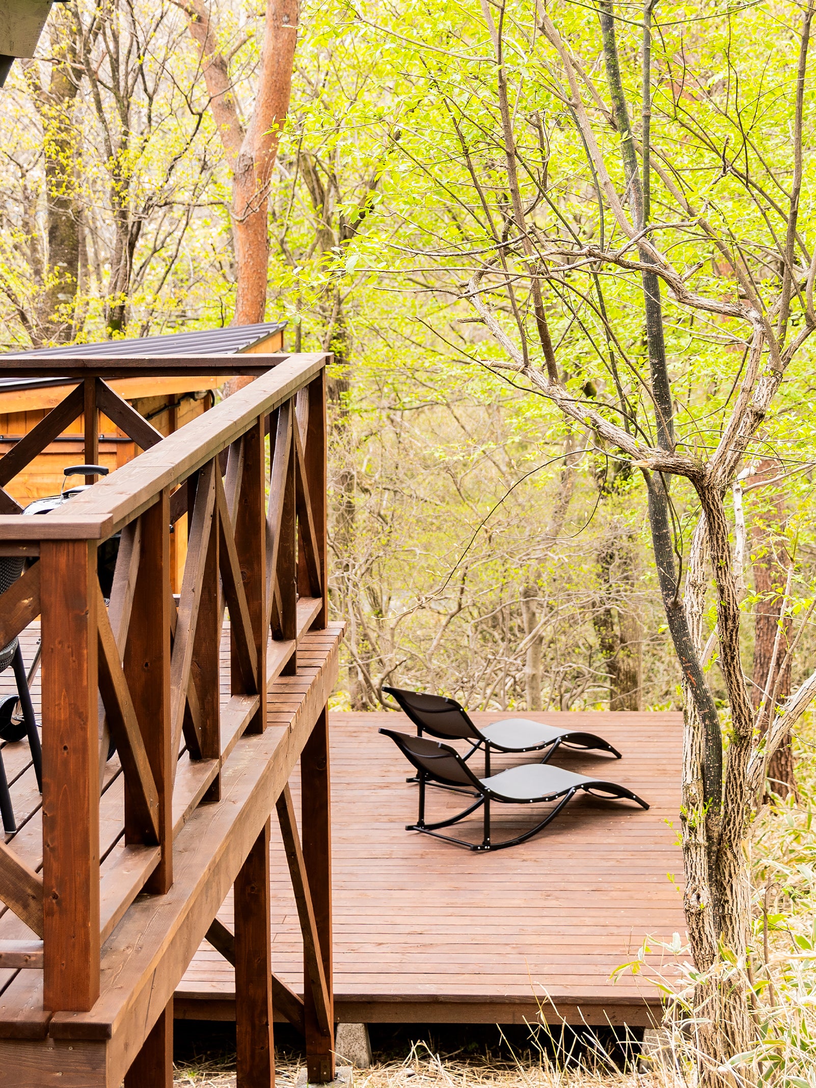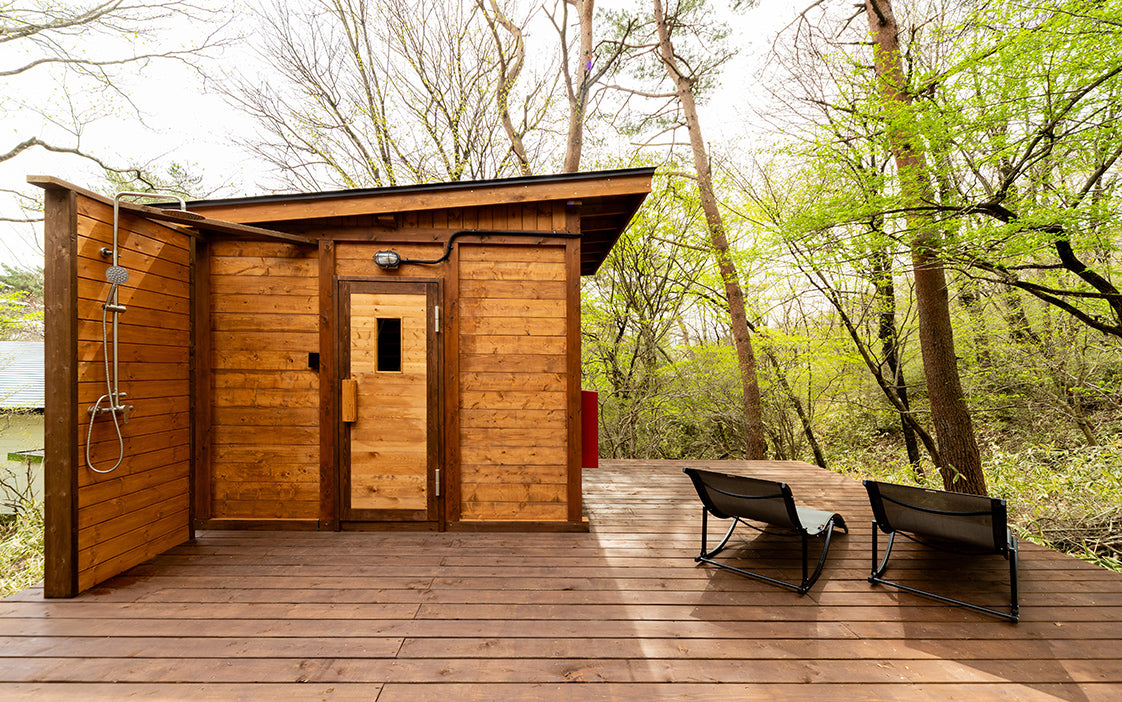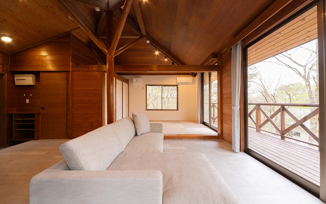 rinne 那須 Sauna Villa Ⅱは、森の奥にひっそりと佇み、まるで秘密基地のような一棟貸しの空間に、専用サウナと心地よいテラスが備わった、とっておきの隠れ家です。